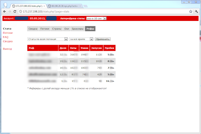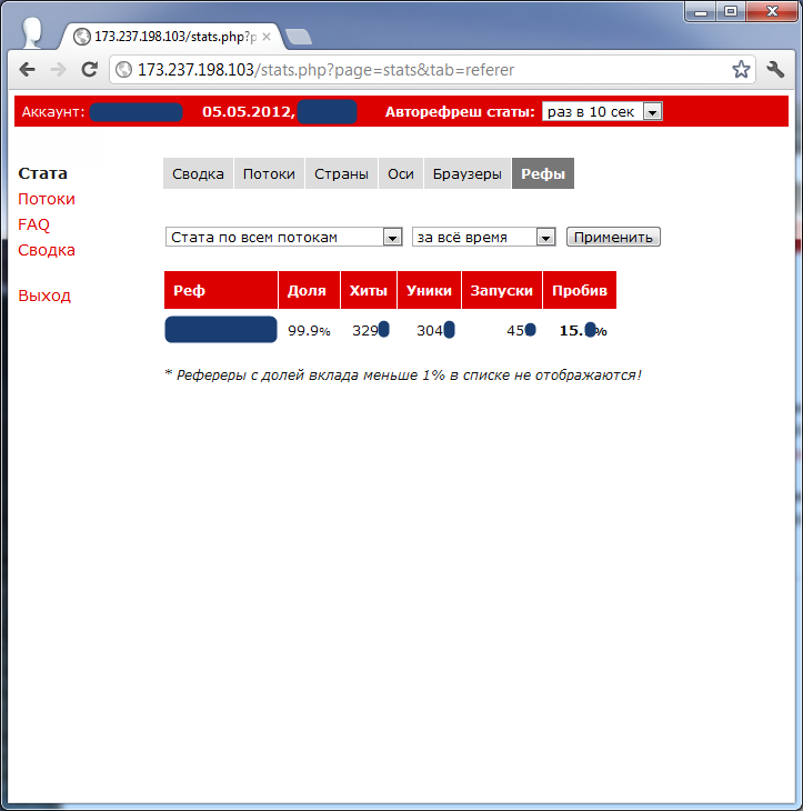 Что у вас за проект?Суть нашего сервиса — связка в аренду, доступная в любой момент, круглосуточно. Вы закачиваете нам свой exe-файл, льёте траф и получаете загрузки. Как называется связка?Этот проект не имеет названия, так как изначально разрабатывался для приватного использования, а не на продажу. Каковы условия использования системы?Мы работаем либо за 5% трафа, либо $150 за неделю аренды ($500 за месяц). Если у вас в трафе нет US, CA, GB, AU — то сотрудничество возможно только за $. Чем вы отличаетесь от конкурентов?На рынке должен быть выбор — и мы его обеспечиваем.У нас: Как мне начать?Зайдите в раздел "Потоки", Нажмите кнопку "Создать поток". Введите "Название потока", выберите "Файл для загрузки" и нажмите "Сохранить". Поставьте литься траф на URL "Сюда сливаем траф" (можно редиректом, можно iframe-ом). Есть ли ограничения на количество трафа / страны ?На трафик не накладывается ограничений — ни по количеству, ни по странам. Какой пробив на вашей связке?Самый простой вариант увидеть пробив — слить как минимум 1000 уников трафа на тест. Пробив напрямую зависит от трафа, у всех он очень разный. Средний пробив по системе вы найдёте в разделе Сводка. Как мне проверить связку на scan4you?У нас стоит ряд фильтров от АВ, роботов, исследователей, итд. Не пытайтесь самостоятельно проверить связку — мы делаем это автоматически и отображаем результаты проверки в админке, в разделе AV-тест. Зачем надо обновлять актуальную ссылку под траф?Главная причина — домен достаточно быстро спаливается, после чего часть трафа перестаёт доходить. Вообще, долго лить на один и тот же домен — палевно по многим причинам. Поэтому мы настоятельно рекомендуем настроить автоматический забор актуальный ссылки каждую минуту. Что будет если я буду лить на неактуальную ссылку?Система автоматически отвяжет домен через несколько часов после того как он перестал быть актуальным, и ваш траф начнёт литься впустую. Поэтому забирайте от нас актуальную ссылку каждую минуту, и если она сменилась — переключайте траф на неё. Как часто надо забирать актуальную ссылку?Раз в минуту — не реже и не чаще. Если домен или ип попадет в блек, что мне делать, линк сам сменится?Мы следим за оперативной сменой IP и доменов, они у нас всегда чистые. Я хочу отдельный сервер под траф (либо запасной, на случай если упадёт основной).В этом нет необходимости, так как имеется большой запас по трафу, домены и IP мы даём всегда чистые. Что грузится на мои 5% в случае сотрудничества за процент?Мы грузим разный софт в разное время, но при этом всегда следим за его чистотой. Как часто меняются домены?У нас работает авточек — как только домен запаливается — мы его меняем. Помимо этого домен принудительно меняется каждый час, вне зависимости от спаленности. Почему я захожу на ссылку для трафа, а там 404 Not Found ?У нас стоят различные фильтры и защиты, в том числе — защита адверта от самозаражения. Не пытайтесь заходить сами на горячие ссылки, предназначенные для трафа. Если я арендую за деньги — что произойдёт после окончания периода аренды?Траф продолжит приниматься — мы ничего не блокируем автоматически. К вам постучит саппорт и обсудит дальнейшее сотрудничество. Связка забирает траф или загрузки?Связка забирает загрузки — в 5% случаев вместо вашего файла грузится наш. Есть вариант арендовать связку за фиксированную стоимость, тогда вс