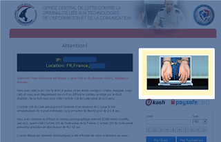 Few weeks ago Malekal spotted that the French design had the yellow square filled by hands cuffed going out of the screen of a laptop