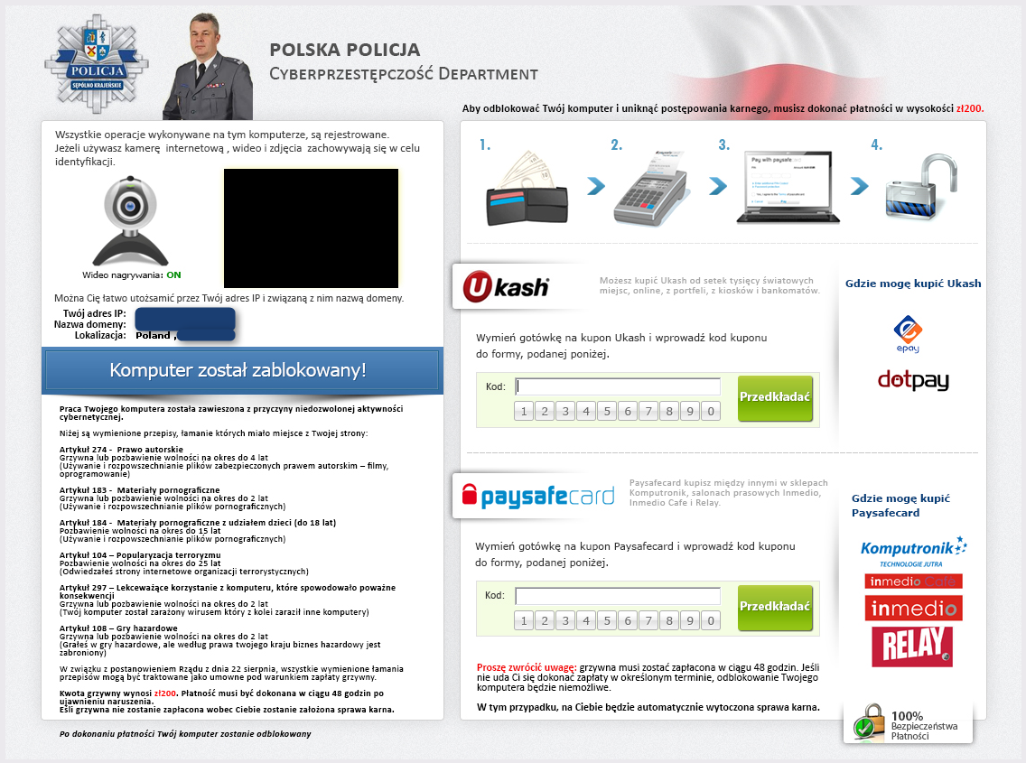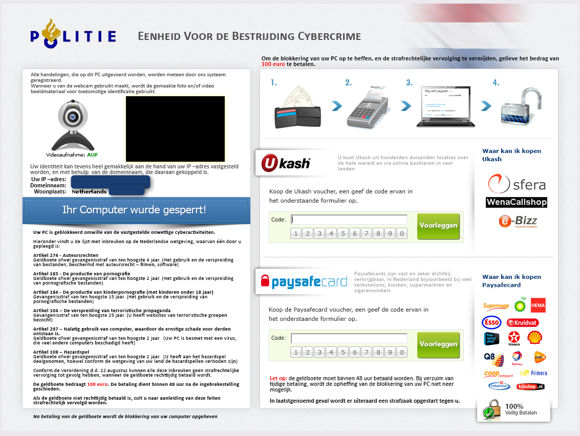 Reveton NO (10-2012) 3rd to target this country (after Gimemo & Urausy https://www.botnets.fr/index.php/Landings_NO ) |