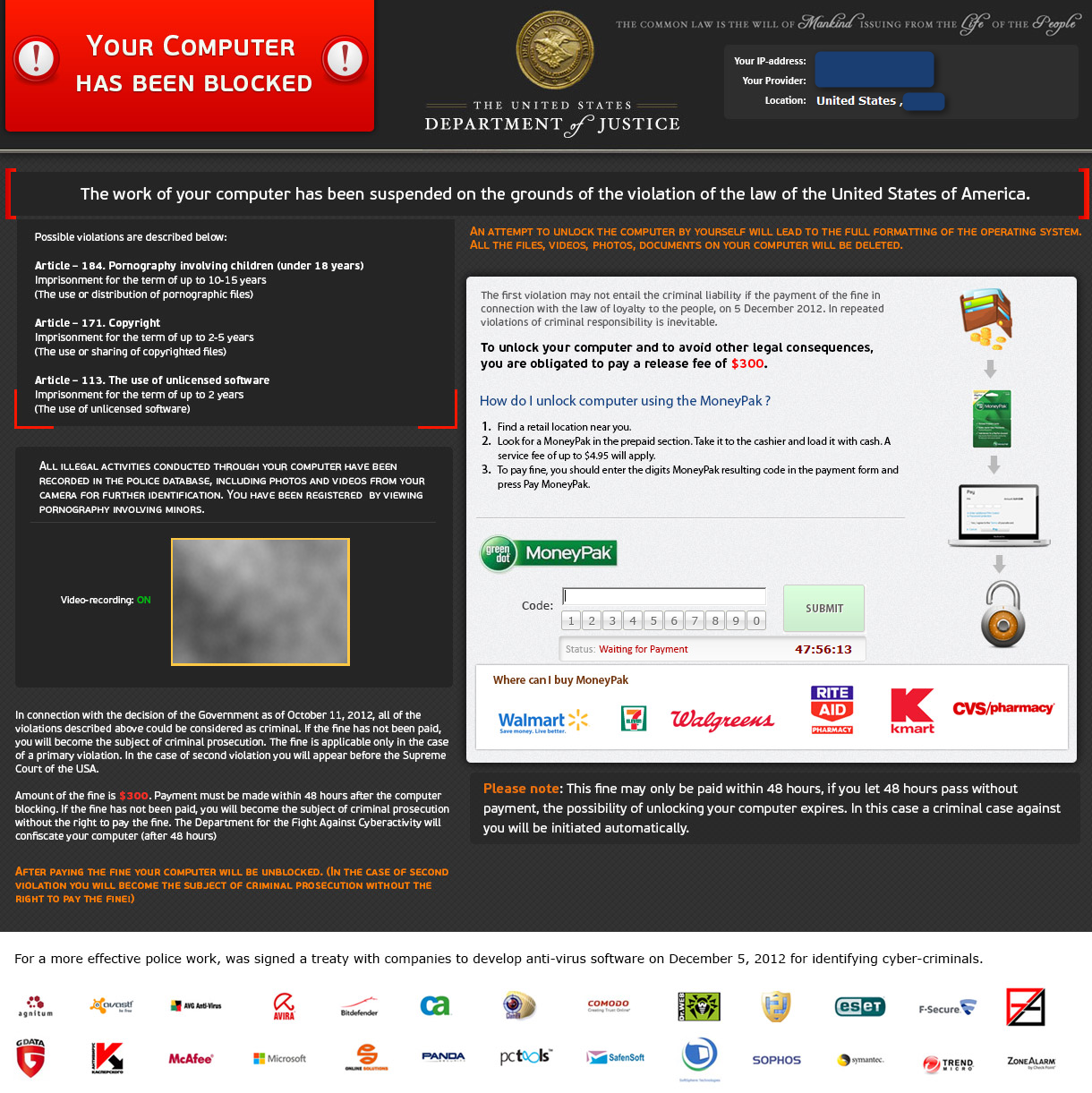 It make think your Antivirus has been modified for cyber-criminals identification after signature of an International Treaty between LEA and Antivirus Vendors :